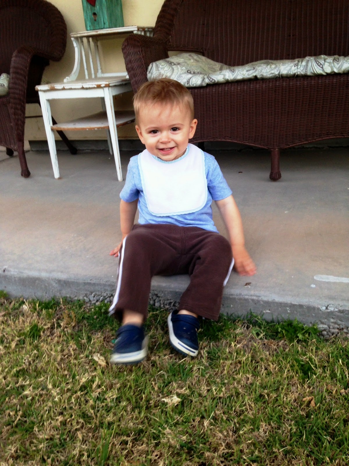 Grandma never got the bib off before Ollie ran to play outside. He looked ridiculous{ly cute}.